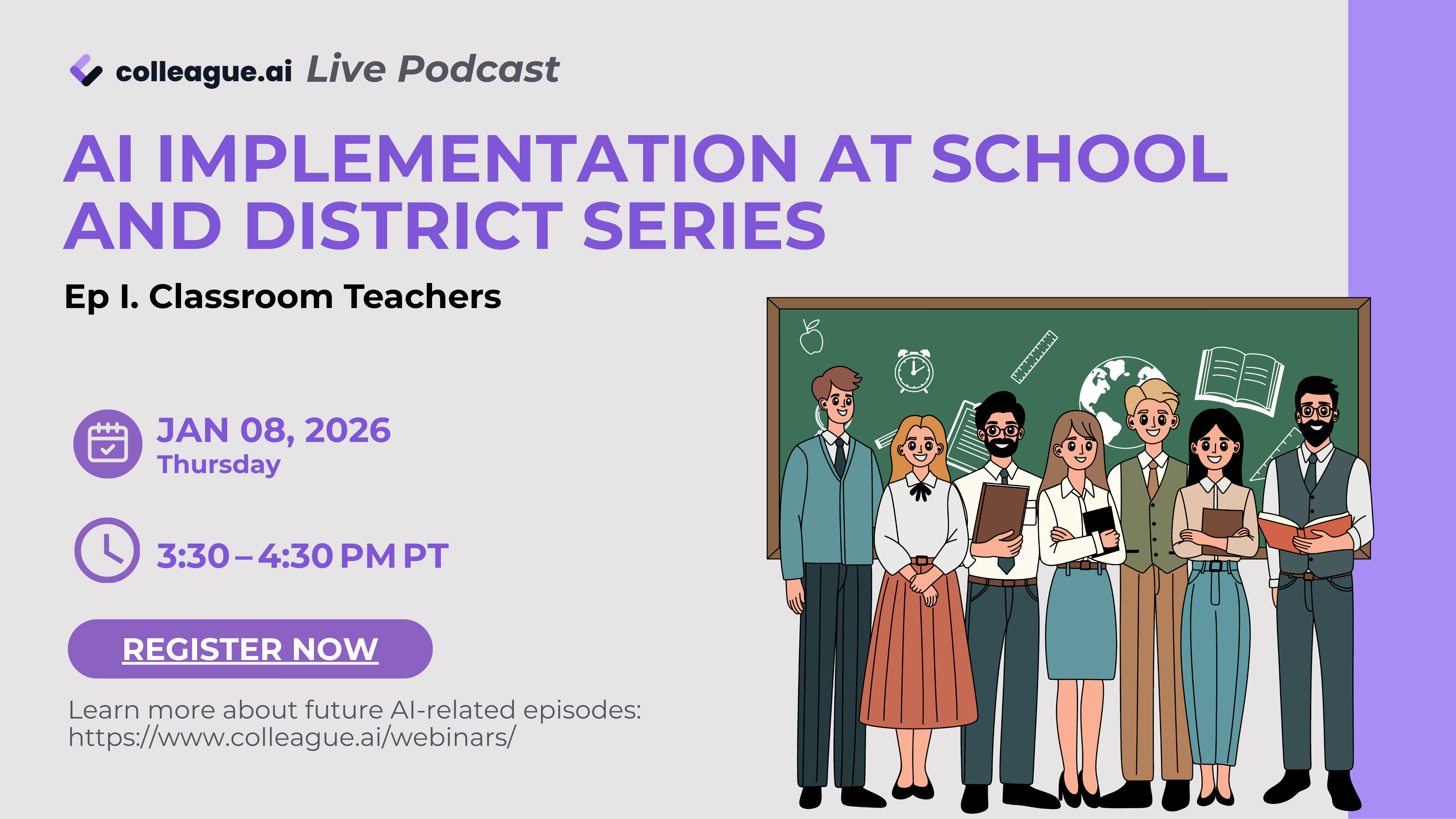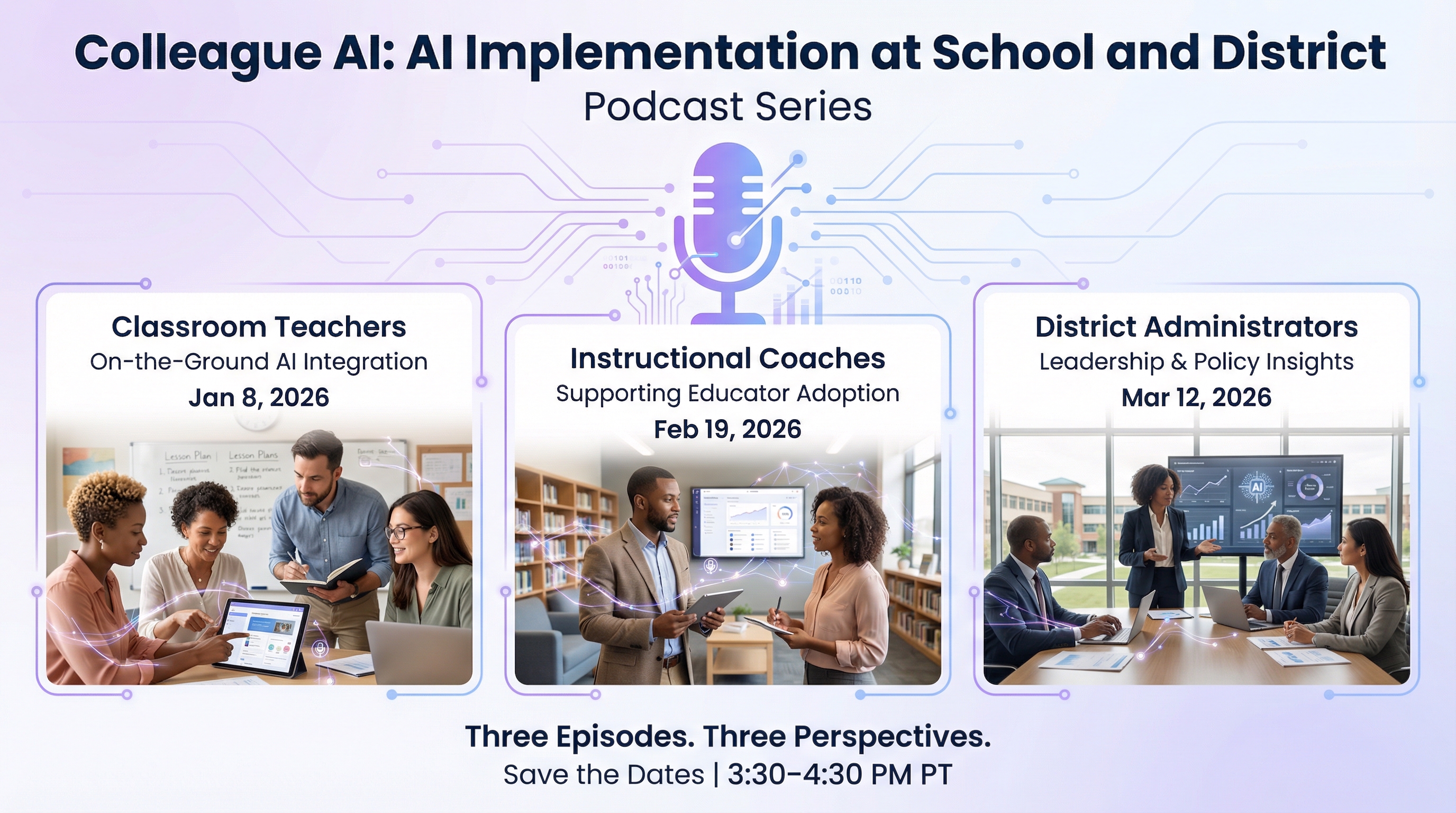 This spring, Colleague AI is launching a three-part podcast series spotlighting how AI is actually being implemented across classrooms, schools, and districts—through the voices of educators doing the work.