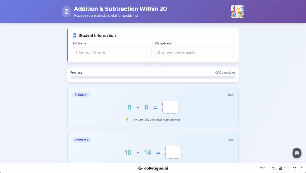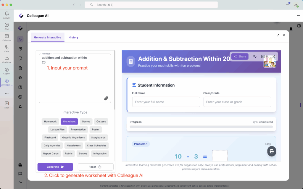 Users can easily generate highly engaging learning materials such worksheets with help of Colleague AI