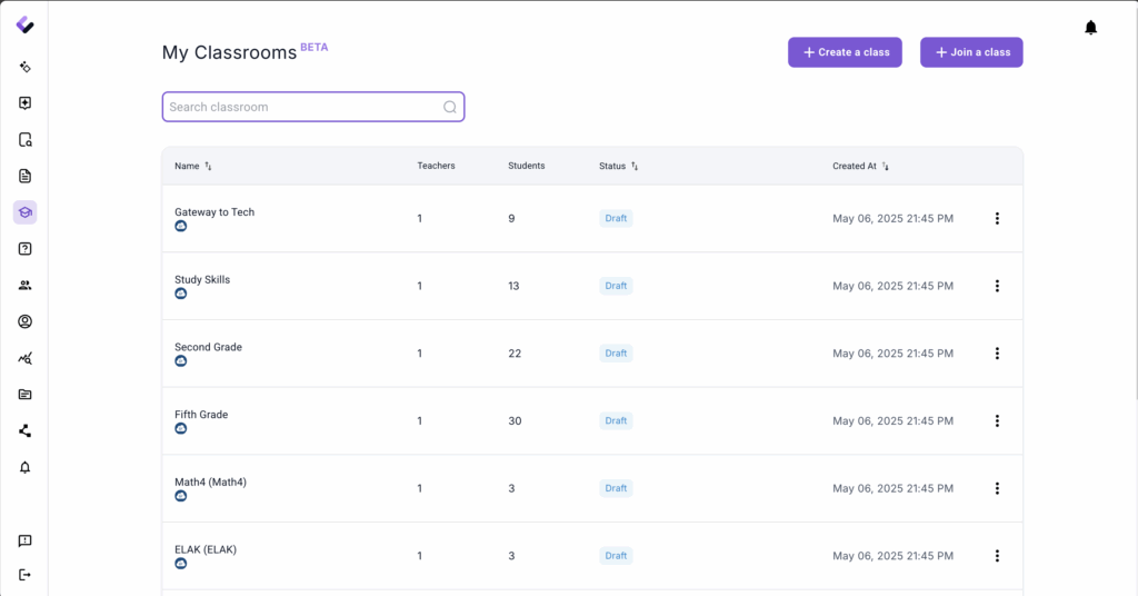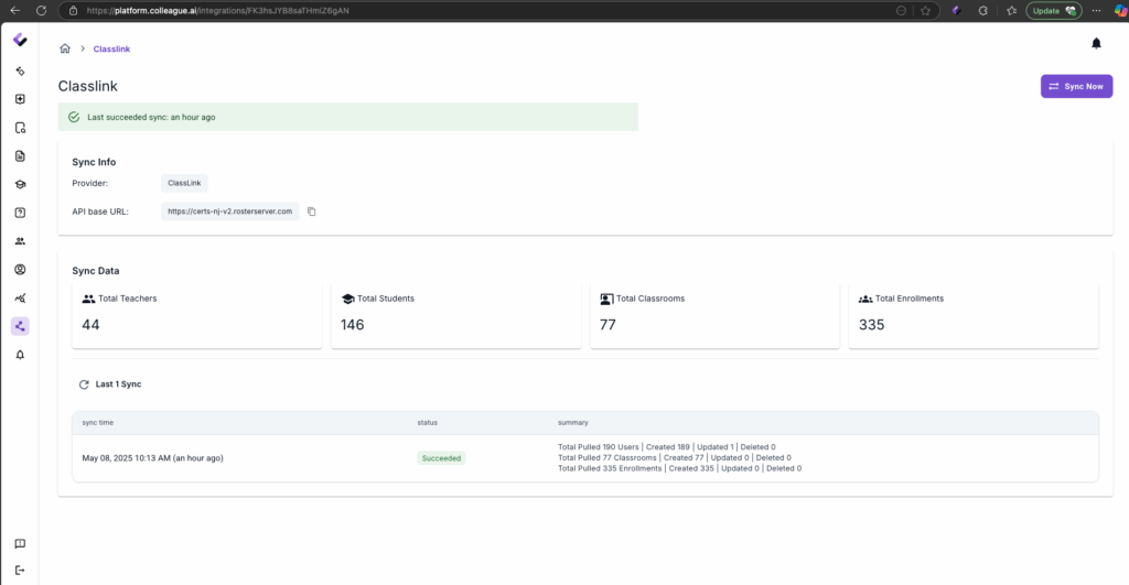 4. Open “Classroom” page to check all imported classroom enrollment. https://platform.colleague.ai/classroom